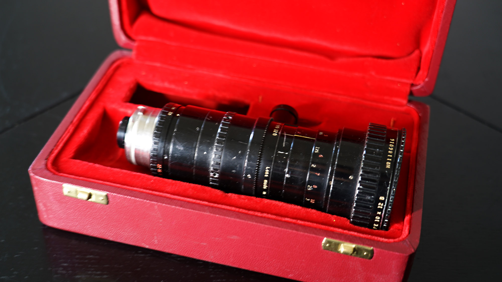 Der legendäre Klassiker, das Angenieux 12-120mm Zoom mit Lichtstärke 2,2 und dem klassichen Arri Stahlbajonnett. Bei seinem Erscheinen galt das Objektiv als revolutionär.Ob als begehrtes Sammlerobjekt oder für den Einsatz mit Vintage-Filmlook, auf jeden Fall ein besonderes Stück. Natürlich gehört das rote Angenieux-Originalcase dazu.Das Objektiv ist für 16mm gerechnet, passt also mit Adapter an MFT Kameras wie die Lumix GH oder die Blackmagic und natürlich falls noch vorhanden, Arri 16mm Kameras. Mit dem Objektiv wurde gearbeitet, doch es wurde stets pfleglich behandelt. Funktioniert, dennoch hier der übliche Hinweis: Keine Garantie, keine Rücknahme.