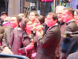 Nicht so sehr gezittert hat vermutlich der Herr mit dem roten Schal ganz links auf unserem Foto: Festivaldirektor Dieter Kosslick, der stets mit Mantel, Schal und Hut bekleidet optimal für Berliner Festivalwinter vorbereitet ist.