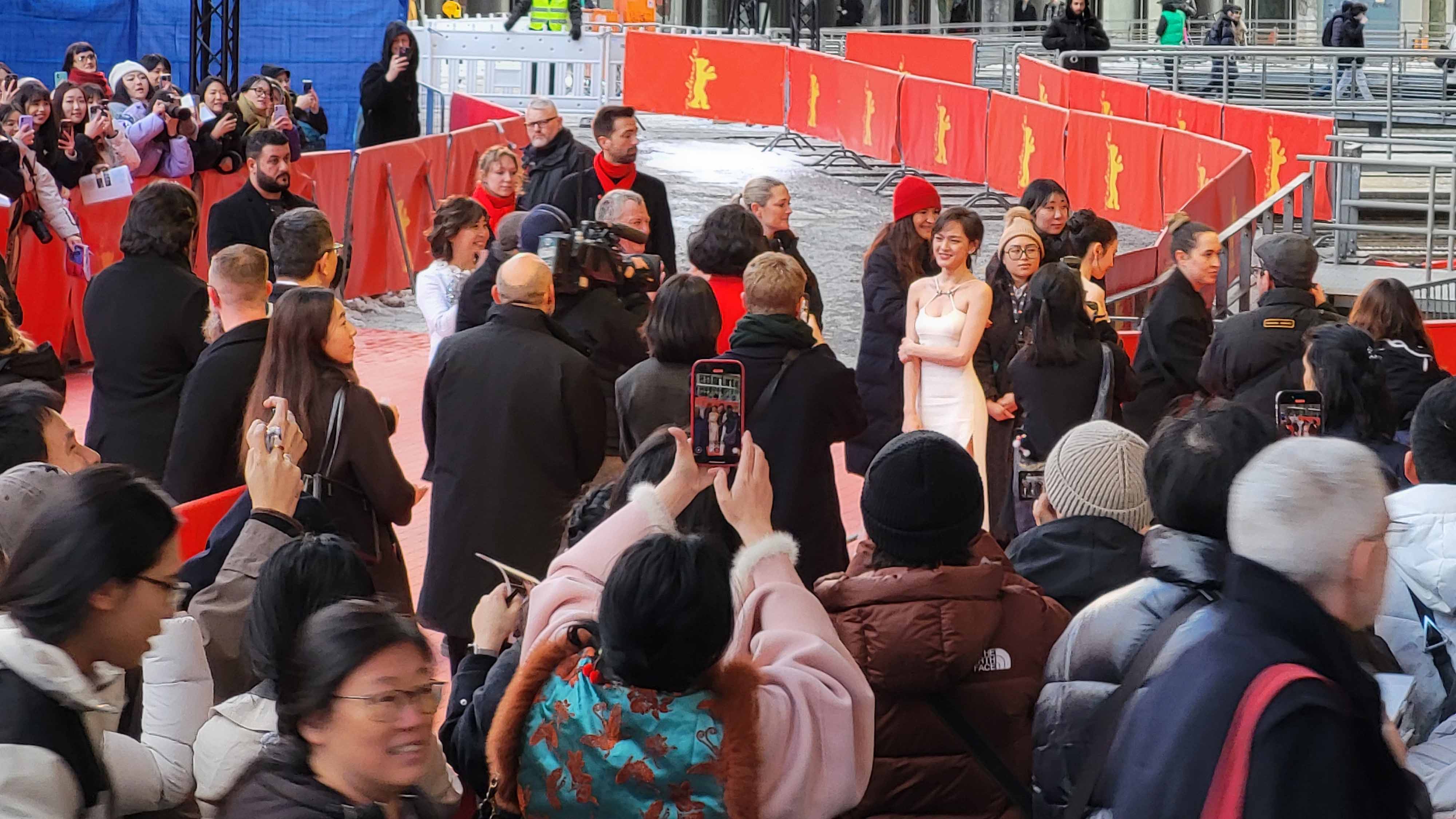 Großer Fan-Auflauf am roten Teppich des Berlinale Palastes. Um 15 Uhr hat der Chinesische Film "Xiang fei de nv hai" (Girls on Wire) von Vivian Qu (Regie, Buch) mit Liu Haocun, Wen Qi, Zhang Youhao, Zhou You, Peng Jing Premiere.Trotz eisiger Temperaturen verbrachten die Regisseurin des Films, Vivian Qu und ihre beiden Hauptdarstellerinnen Wen Qi und Liu Haocun viel Zeit auf dem roten Teppich für Fotos, Videos und zahlreiche Autogrammwünsche der kreischenden Fans.