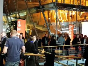 An Empfängen war der Tag wieder reich gepackt, nachmittags wieder der HFF-Empfang in der Home Base mit einem Wiedersehen mit vielen früheren Kolleg-inn-en bei Kaffee und Kuchen, dann der wieder sehr schöne Arte-Empfang in der Akademie der Künste, farblich, wie es sich für den Sender gehört, sehr in Orange gehalten, und danach der Empfang von Media bzw. neuerdings Creative Europe.