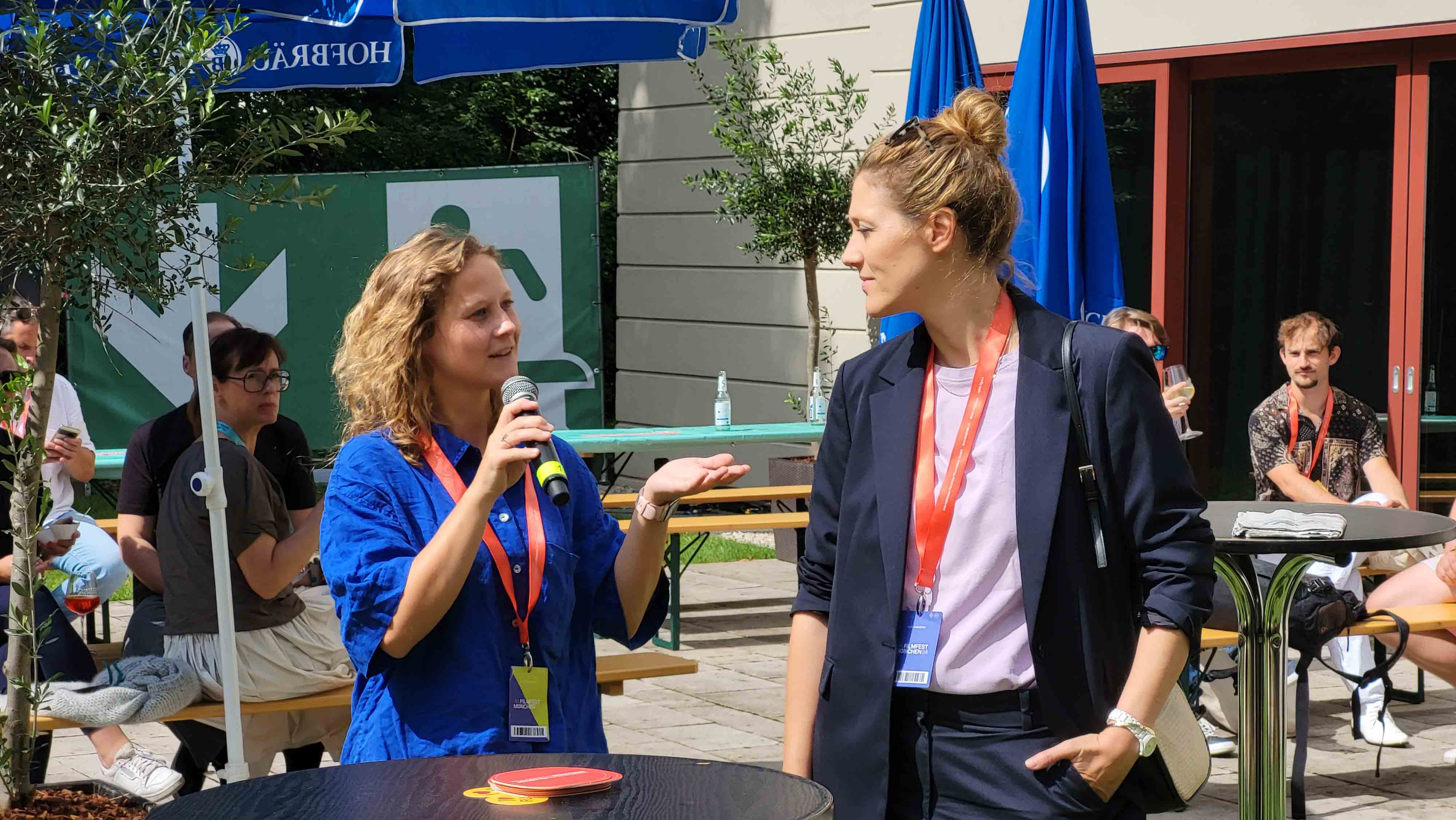 Die Happy Hour von Austrian Film am Nachmittag in der Beergarden-Convention im Garten des Amerika Hauses stellte das österreichische Filmschaffen und die vielfältigen Möglichkeiten, in Österreich zu drehen, in den Mittelpunkt. Es war sommerlich sonnig, aber nicht zu heiß, also perfekte Bedingungen für einen Gartenempfang. Nina-Anica Keidies von der Austrian Business Agency begrüßte die Gäste und lud dazu ein, Filme in ihrem Heimatland zu drehen. Natürlich waren auch Österreichische Filmemacher*Innen unter den Gästen, mit denen man an den Biertischen und Bänken ins Gespräch kommen konnte.