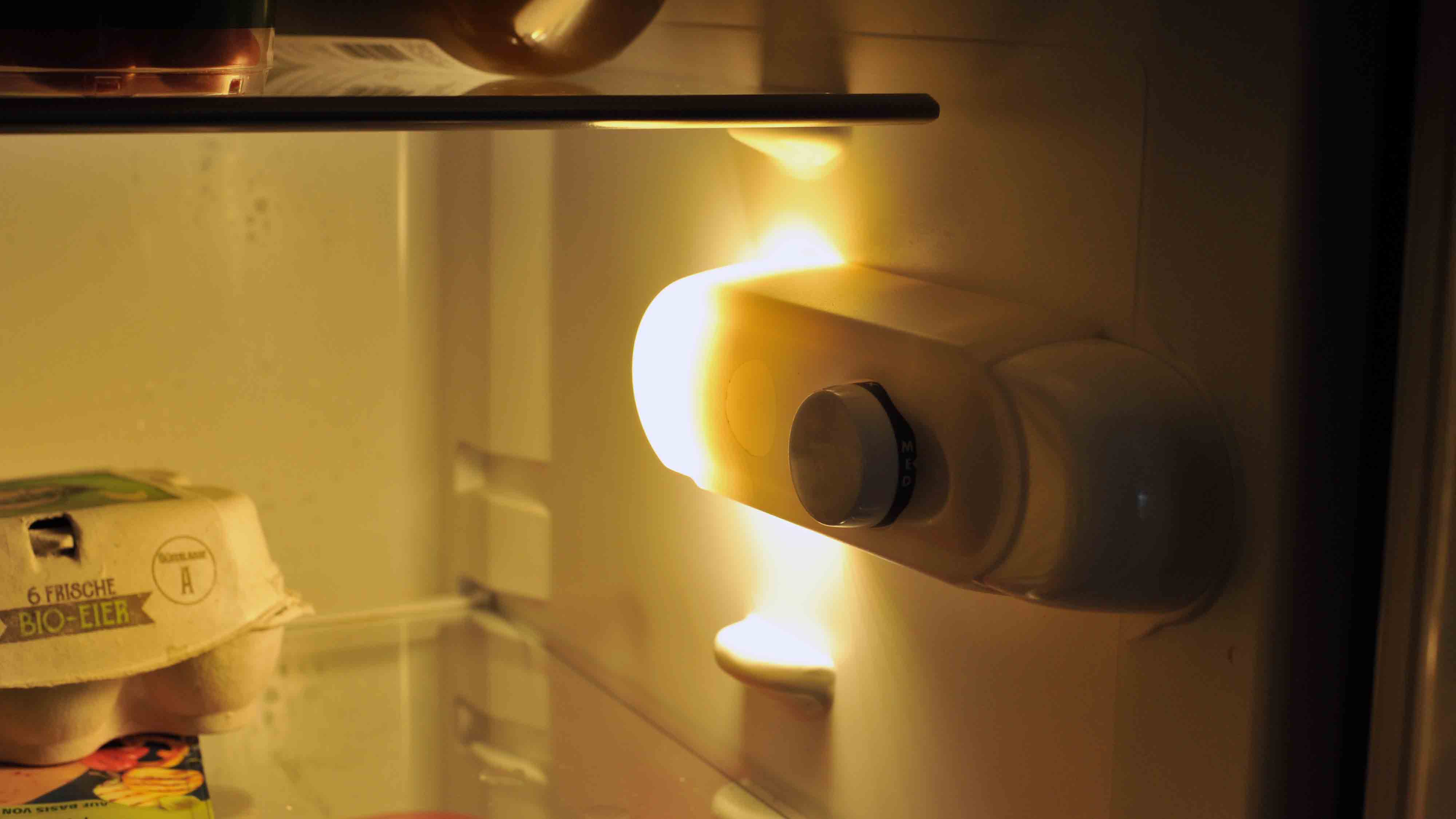 Nun die Technik im Kühlschrank soll für Tiefkühlfach und Kühlschrank Kälte produzieren, damit Gefriergut gefroren und Kühlschrankinhalt frisch bleibt. Damit der Kühlschrank das im gewünschten Maß tut, regelt der Thermostat, dass die gewünschten Temperaturen eingehalten werden. Er schaltet dafür den Kompressor des Kühlschranks nach Bedarf an und aus. Wird es zu warm, schaltet er ein, wird es zu kalt, schaltet er ab. Dies macht der Thermostat mit Hilfe eines Temperaturfühlers. Zusätzlich kann man am Thermostat auch die Wunschtemperatur einstellen.