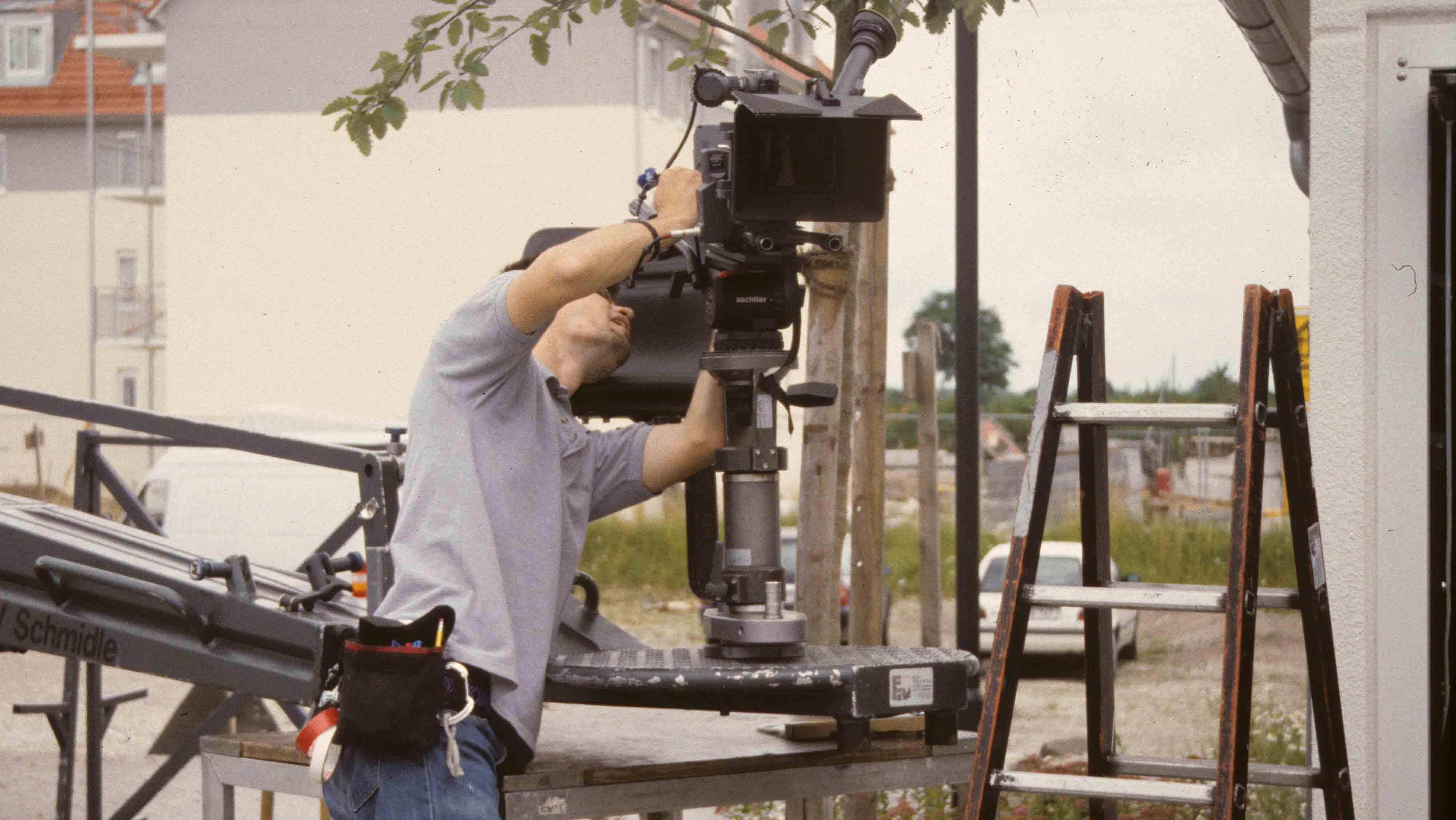 - Er/Sie stellt die Ausrüstung (in der Regel beim Kameraverleih) zusammen. Das bezieht sich nicht nur auf Kamera, Kompendium, Schärfezieheinrichtung und Optiken, sondern etwa auch auf Stativ und Schwenkkopf.