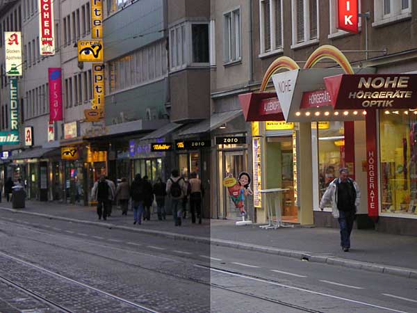Doch wehe, das Bild war nur ein Perforationsloch versetzt beim eigentlichen Belichten. Deshalb sollte man am Besten vor Ort, dort wo man dreht, seine Filmrolle in der Kamera vorbelichten, darauf achten, dass das Material nicht ganz durch die Kamera läuft, sondern kurz vor Ende der Rolle stoppen und die Kamera (mit Deckel vor dem Objektiv, geschlossenem Okular, so heißt der Sucher, und geschlossener Blende) rückwärts laufen lassen.