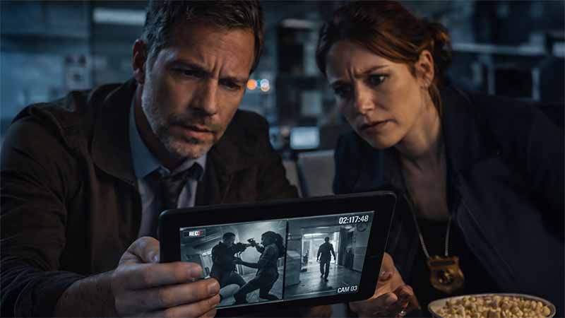 Längst gehört es zum Standard vieler Krimis, dass die Ermittler nach einem Mordfall alle Aufzeichnungen von Überwachungskameras aus dem Umkreis des Tatortes einfordern. Und natürlich spielen die Bildausschnitte, die Positionierung der Kameras, das Vorhandensein oder auch das Verschwinden von Aufnahmen eine wichtige Rolle in den weiteren Ermittlungen. Dabei werden auch gewisse Stileme der Überwachungskameras genutzt, häufig die erhöhte Anbringung und Vogelperspektive, das Schwarzweißbild, eingeblendete Zeitinformationen und vieles mehr.