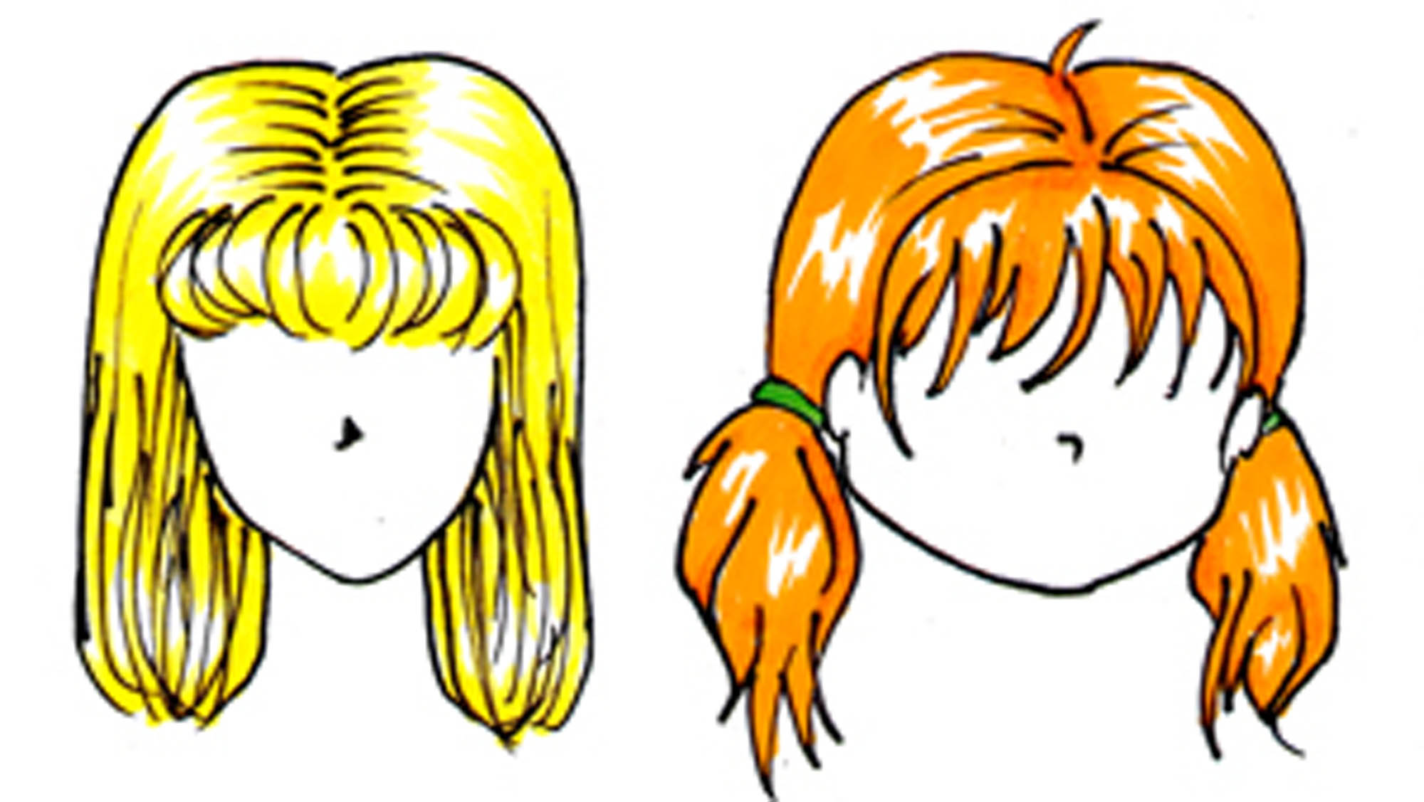 Die Haare sind ebenfalls wichtige Informationsträger. Ihre Farbe signalisiert gemäß Kulturkreis und asiatischer Farbsymbolik eigene Eigenschaften. Die für Asien verbreitete Haarfarbe schwarz signalisiert auch in den Animes Normalität. Besonderheit dagegen bedeuten blonde Haare, diese Figuren sind einfach anders, sind unkonventionell, unschuldig, manchmal auch naiv. Rote Haare stehen für Aktivität oder Aggressivität, grüne Haare für Exotik, Figuren aus einer anderen Welt, die aber meist positiv belegt sind. Blaue Haare signalisieren Ähnliches, stehen jedoch auch für kühle Distanz oder Intelligenz. Lila Haare signalisieren Reichtum, Adel und all die Geheimnisse rund um heimliche Prinzen und Prinzessinnen. Weiße Haare signalisieren das Göttliche oder Übermenschliche.