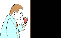Die linke Hälfte eines Raumes wird mit dem Darsteller, der vielleicht mit einem imaginativen Gegenüber spricht, belichtet, während die andere Bildhälfte schwarz abgekascht ist. (Das bedeutet, im Kompendium wird eine schwarze Maske so angebracht, dass sie einen Teil des Bildes abdunkelt, der Film also nur zur Hälfte belichtet wird.