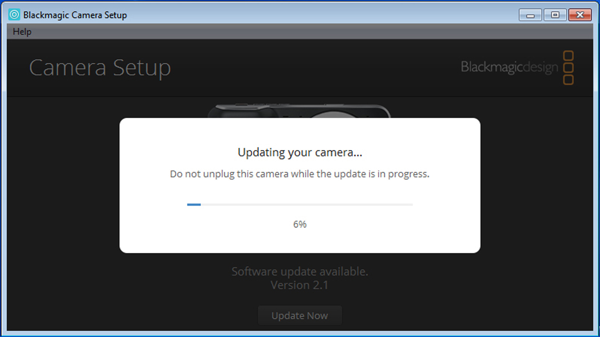 Nachdem man sich die Software Blackmagic Camera Setup herunter geladen hat, entpackt man die Zip Datei. Danach installiert man die Software. Die 2.1 ließ sich problemlos unter Windows 7 installieren. Vorsicht- manches neuere Camera Setup File läuft nur noch auf Windows 8 oder 10 ohne dass darin Neuerungen für die Pocket enthalten sind.