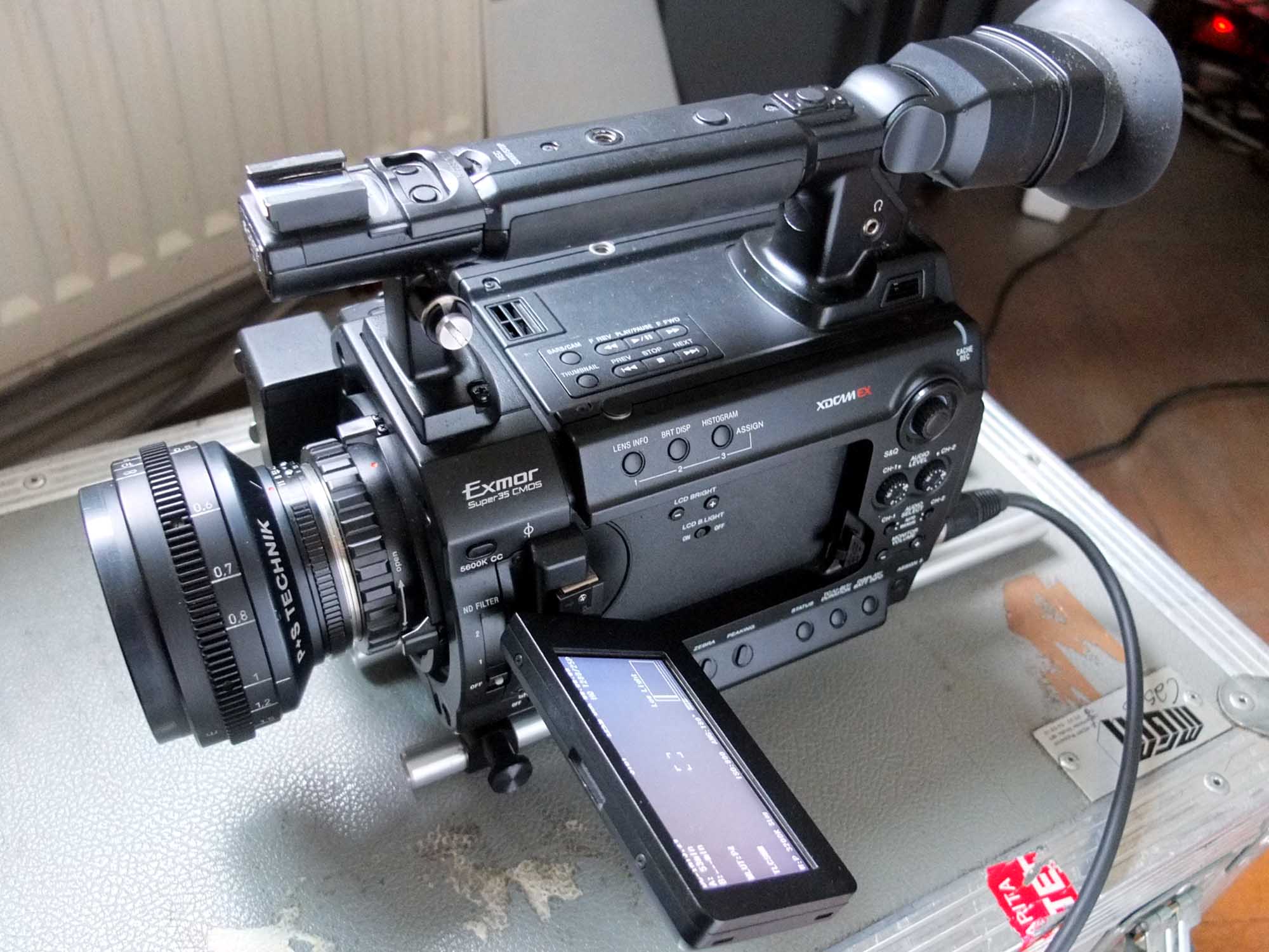 Mit der PMW-F3 hat Sony einen Camcorder im Angebot, dessen PL-Mount die Verwendung hochwertiger Kinoobjektive erlaubt. Die Kamera besitzt einen Exmor-Super35-CMOS-Sensor (23,6 x 13,3 mm) mit S35-ähnlichen Größenverhältnissen. Sie kann auf die beiden per eingebautem Slot beschreibbaren SXS Karten im Format XDCam EX (das ist MPEG-2, 4:2:0, 8 bit) mit einer maximalen Bitrate von 35 Mbps) aufnehmen.