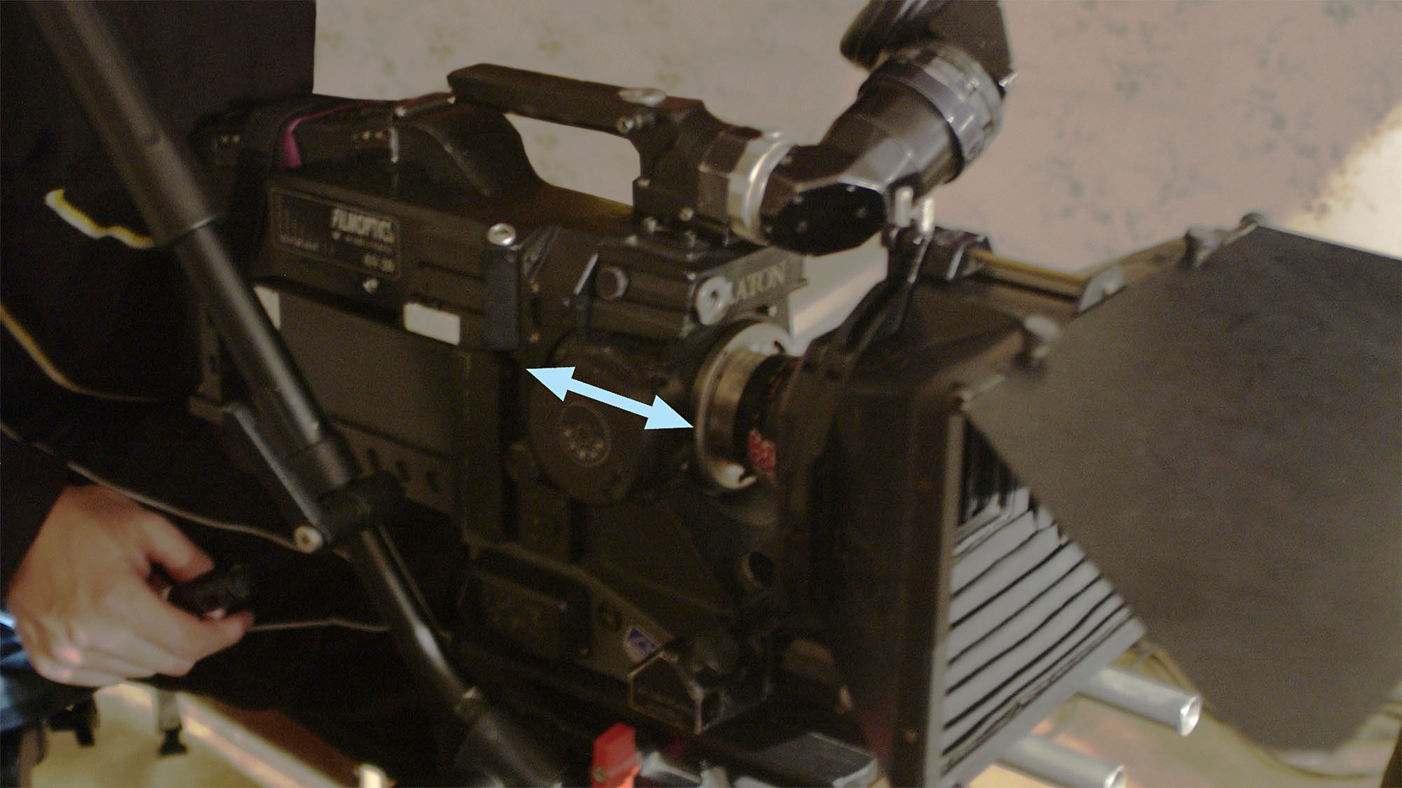 Auflagemaß: Abstand zwischen der Auflage des Bajonetts (oder Schraubgewindes) und der Filmebene, hier bei einer Aaton-XTR-Kamera