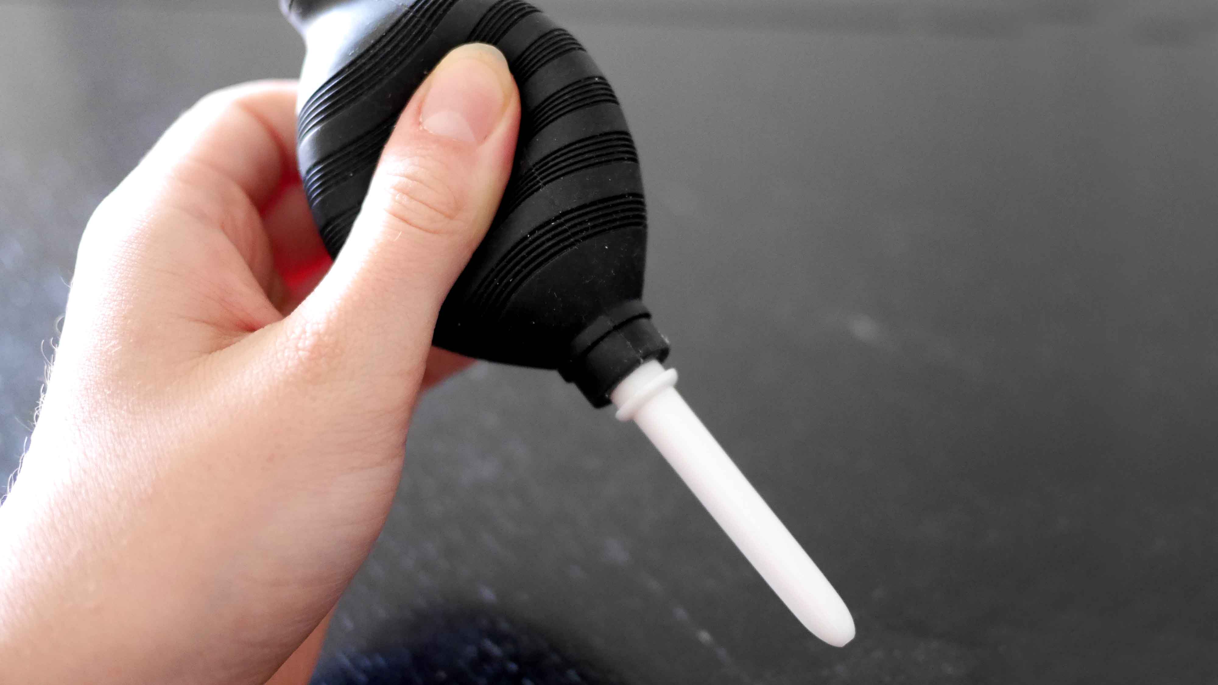 ...Wegpusten. Idealerweise mit Luft aus einem Blasebalg. Das klingt altmodisch insbesondere, weil es ja Druckluft aus der Spraydose (Dust Off etc.) gibt. Verschiedene Hersteller bieten solche Dosen an. Teuer ist zunächst das wiederverwendbare Ventil, aber auch die passenden Sprayflaschen haben ihren Preis. Und auch wenn das die Anbieter solcher Spraydosen nicht gerne hören,- so ein Druckluftspray kann Feuchtigkeit oder chemische Rückstände auf den Objektiven hinterlassen. Wenn man aber im Innern eines Gerätes, etwa beim Bildfenster einer analogen Filmkamera damit hantiert, kann es leicht passieren, dass man die Flusen und den Staub nur noch weiter ins Kameragehäuse hineinpustet.