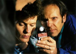 | Eine Szene aus dem Film "Franta": Die Schauspieler im Schatten sind richtig belichtet, aber der Hintergrund ist zu hell | Reduziert man mit Blende und/oder ND-Filter die Helligkeit, so bekommen die Bäume wieder Zeichnung, aber Franta und Mascha verschwinden im Schwarz |