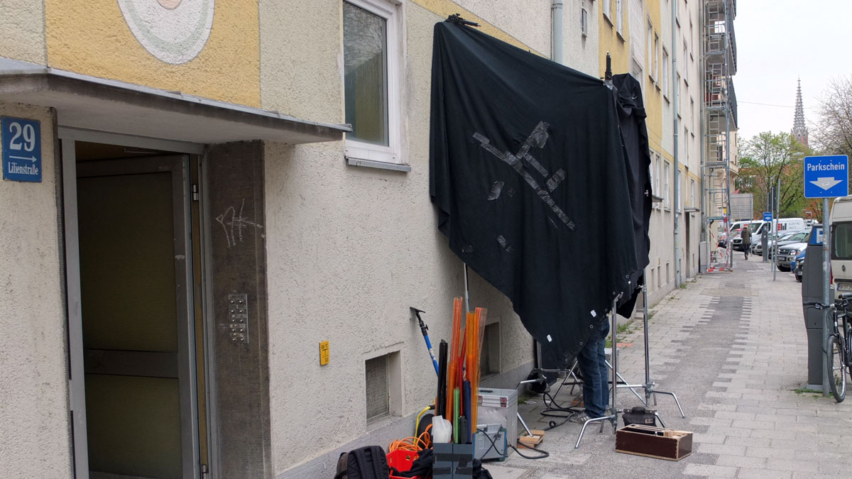 Will man Mond,- oder Laternenlicht simulieren, muss man mit Molton verkleidete große Kästen vor die Fenster bauen in denen man entsprechende Scheinwerfer für seitlich einfallendes Licht platzieren kann. Das ist wichtig, damit man von den Innenräumen aus draußen durch das Fenster zwar Schwarz für Nacht sieht, von dort aber zugleich etwas Licht hineinfallen kann.