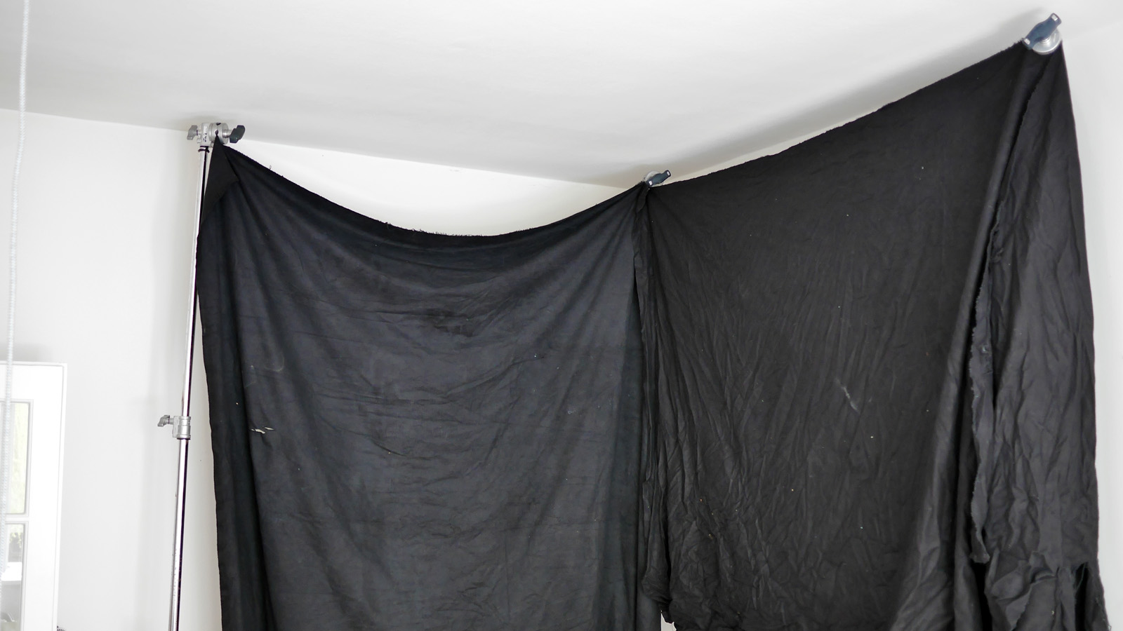 Falls Abdeckfahnen nicht reichen, muss man versuchen, alle nicht im Bild sichtbaren weißen Wände durch schwarzen Molton abzuhängen, um das Streulicht zu reduzieren. Dafür kann man unterschiedliche Befestigungsmethoden wählen. Muss der Raum möglichst tadellos wieder nach dem Dreh verlassen werden, kann man beispielsweise zwei Polecats zwischen Boden und Decke oder wenn der Raum kleiner ist, zwischen die Wände spannen (Vorsicht, Papiertaschentücher auf die Gummipuffer, damit es keine Spuren auf der weißen Decke oder Wand hinterlässt) und den Molton daran befestigen.