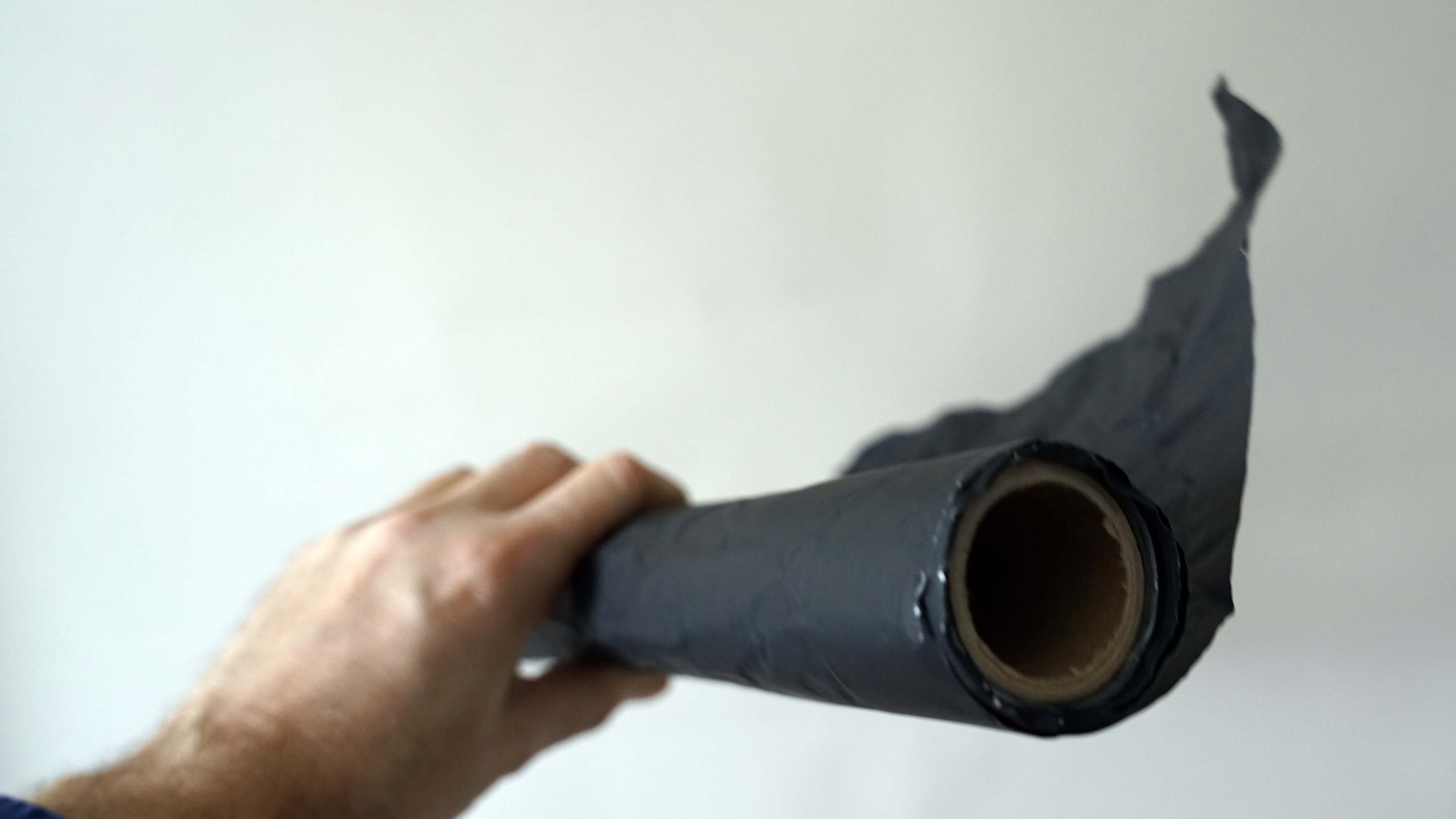 Sie haben die Eigenschaft, wenn man sie einmal geformt hat, Falten zu bekommen, außerdem schneidet man sie jeweils für den gewünschten Zweck zurecht. Daher kann man sie schlecht wieder auf die ursprüngliche Folienrolle aufrollen. Man sammelt die Reste am Besten in den Kisten für Folienreste etc. und schaut, wenn man wieder Black Wrap benötigt, ob man nicht vielleicht noch einen passenden Rest hat.