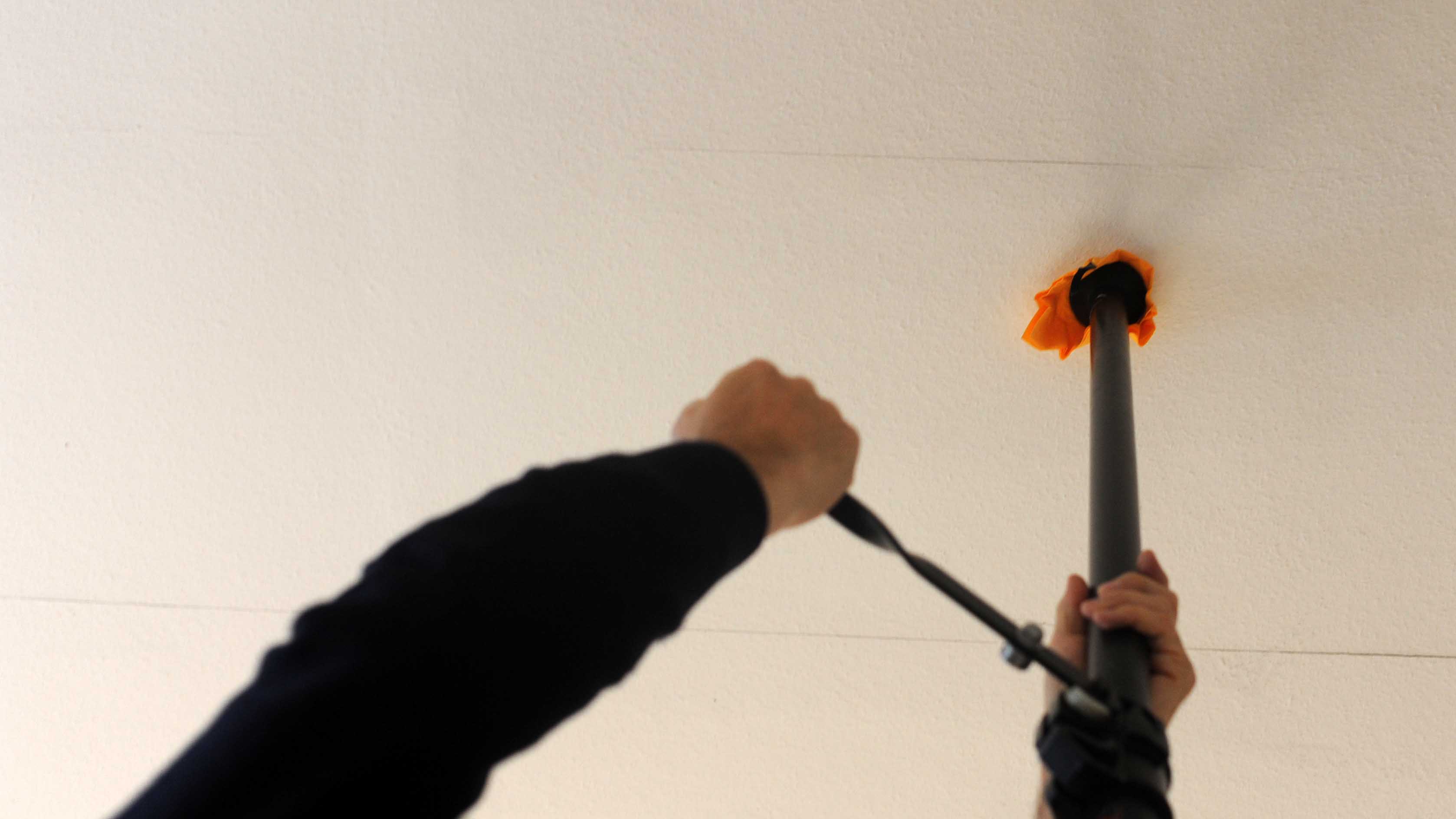 An beiden Enden befinden sich Gummipuffer, die unweigerlich Spuren hinterlassen, wenn sie mit einer Wand in Berührung kommen. Bei sauberen Wänden, edlen Tapeten etc. sollte man die Gummipuffer besser mit Stoff oder wenigstens mit einem Papiertaschentuch umwickeln und dieses mit Gaffer oder Lassotape fixieren!