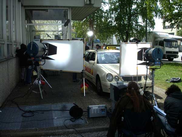 Solche Fahrzeuge sind in der Miete recht teuer, erzeugen Abgase und verbrauchen zudem Diesel-Kraftstoff. Andererseits bieten Sie die größtmögliche Unabhängigkeit von den an den Motiven vorgefundenen Stromverhältnissen. Vor allem bei Drehs in der Natur, in Parks oder im Wald gibt es keine Alternative zum Strom-Aggregat.