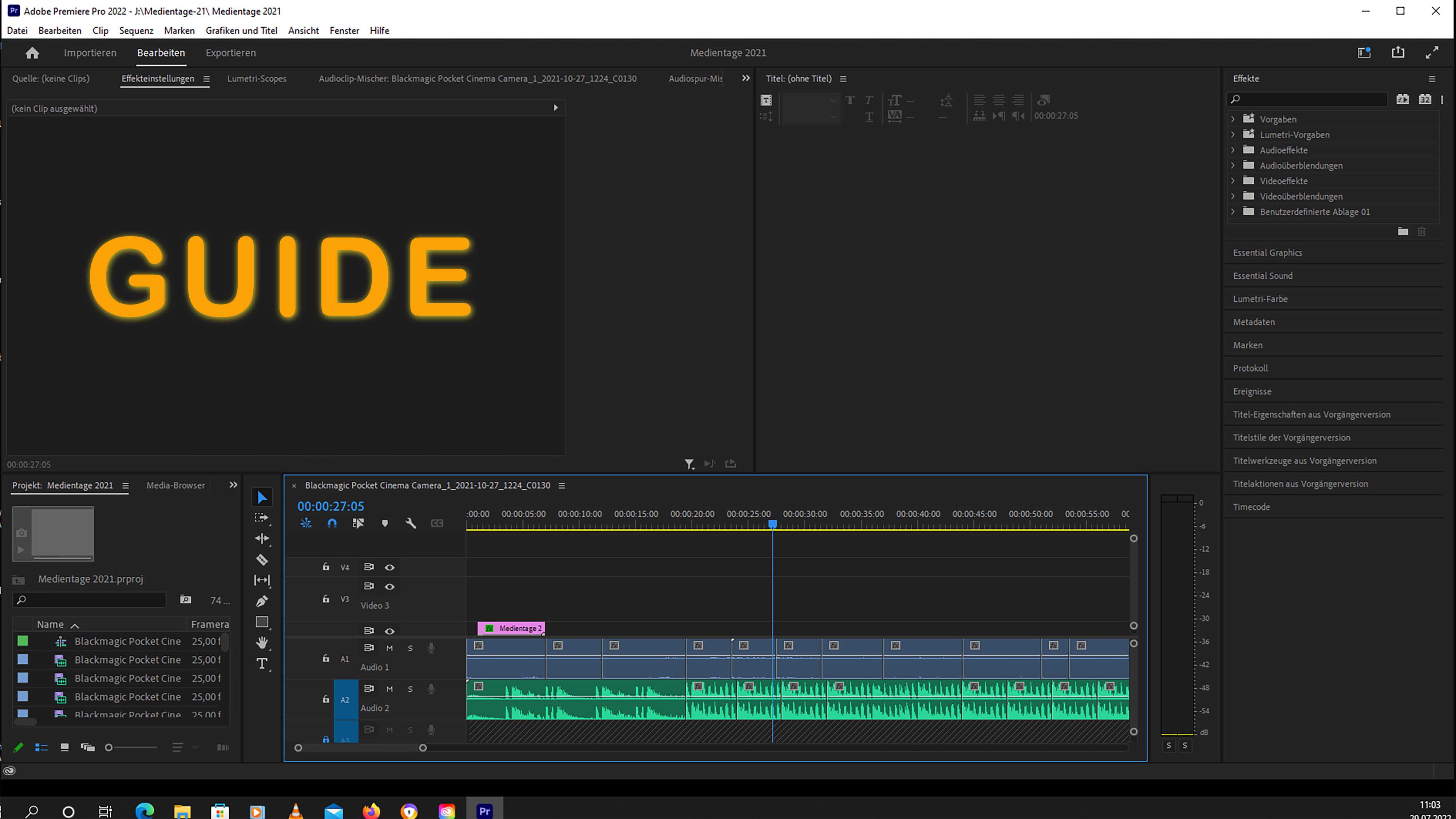Die Anleitung behandelt insbesonder die Verwaltung und Arbeitsabläufe langer oder episodischer Filme. Es wird erklärt, wie man solche Produktionen am besten in Premiere einrichtet, aufteilt und wie man seine Videoclips am besten organisiert. Das umfasst etwa die Hardware und notwendige Voreinstellungen. Welches sind die besten Computer-Setups, für einen optimalen Workflow und welche Voreinstellungen können die Verwaltung der Daten vereinfachen?