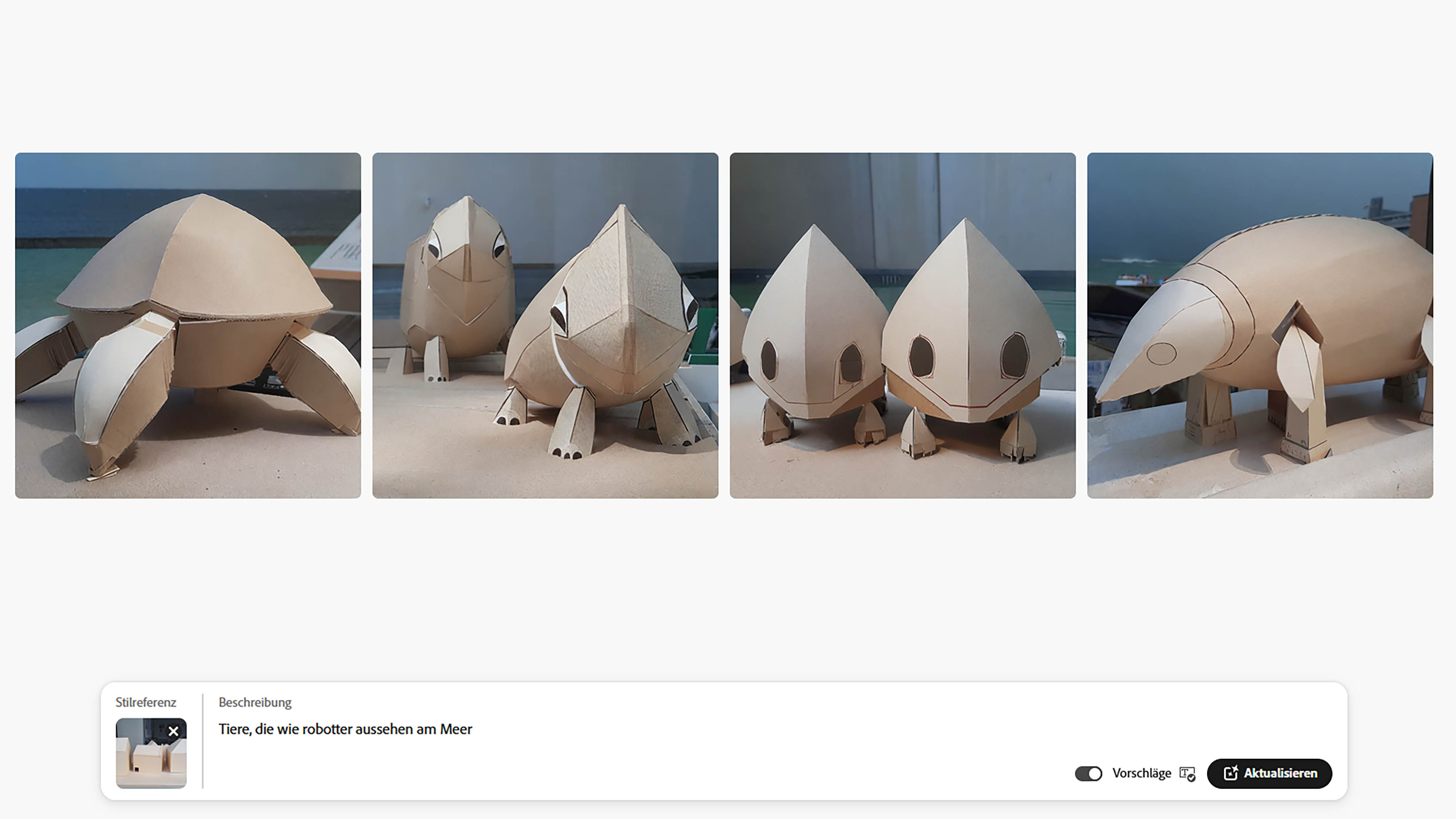 Von Firefly generierte Bilder mit gleichen Vorgaben wie oben, bei denen lediglich das Wort "Menschen" durch "Tiere" ersetzt wurde