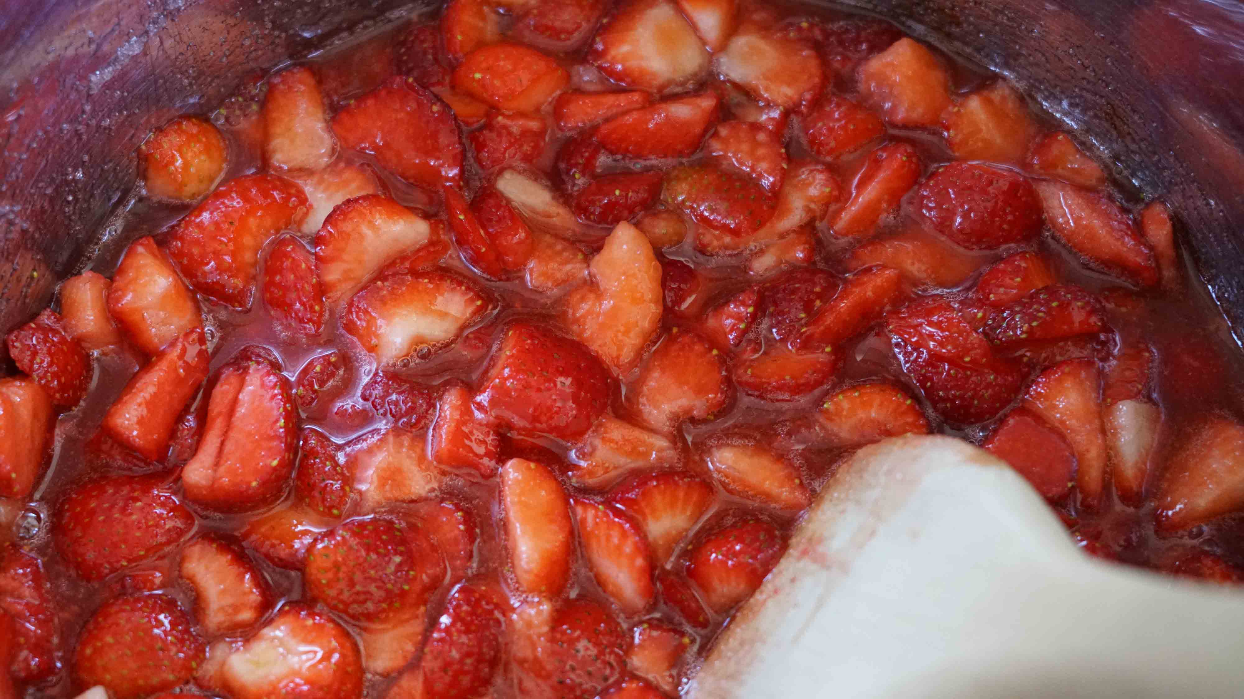 Die Erbeeren (2,5 KG) werden in Stücke, je nach Geschmack, geschnitten. Man kann sie dazu in einen Topf geben, wenn die gewünschte Menge erreicht ist, gibt man 400 Gramm Zucker, wenn man mag, auch Rohrzucker, hinzu. Man kann die Zuckermenge je nach Reifegrad der Erdbeeren auch noch reduzieren, das ist gesünder und lässt den Fruchtgeschmack noch besser zur Wirkung kommen. Außerdem gibt man etwa 4 bis 5 Esslöffel Zitronensaft dazu. Mit einem Kochlöffel verrühren und etwa 10 Minuten stehen lassen. Danach die Masse im Topf erhitzen und etwa 5 Minuten auf kleiner Flamme köcheln. Anschließend den Kompott in ein verschließbares Gefäß abfüllen. Im Kühlschrank ist der Kompott etwa 5 Tage lang haltbar.
