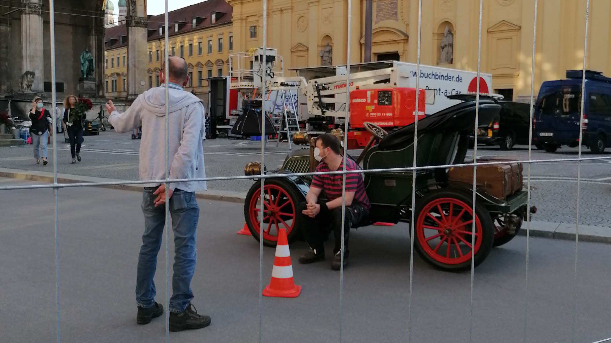 Gerade an Filmsets ist es besonders schwierig, die geforderten Abstände und Sicherheitsmaßnahmen einhalten zu können. Spätestens für alle vor der Kamera, also auch die Komparsen, sind Schutzmasken während der Aufnahme schlicht nicht möglich.