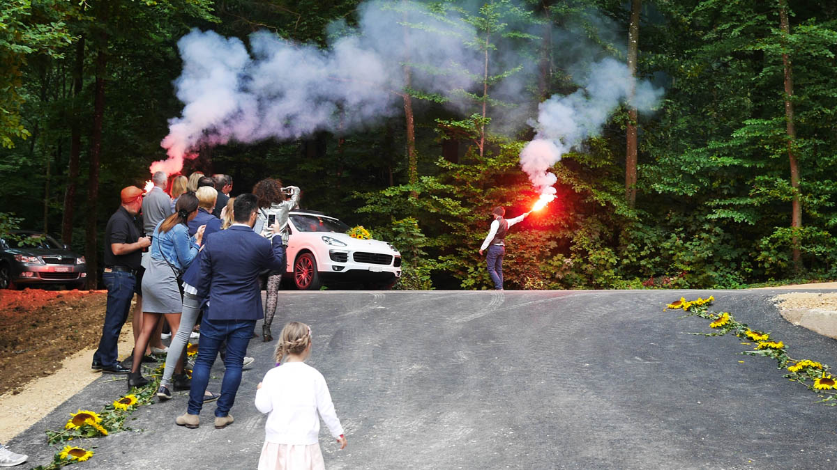 Gerade wenn man alleine dreht, ist es wichtig, selbst für ausreichend Schnittmaterial zu sorgen. Das bedeutet,- nicht nur die ganze Zeit am Brautpaar kleben, sondern immer wieder auch Momente von den Gästen aufnehmen und auch versuchen, von bestimmten Momenten (Ringe, Unterschriften) Details mit zu drehen.