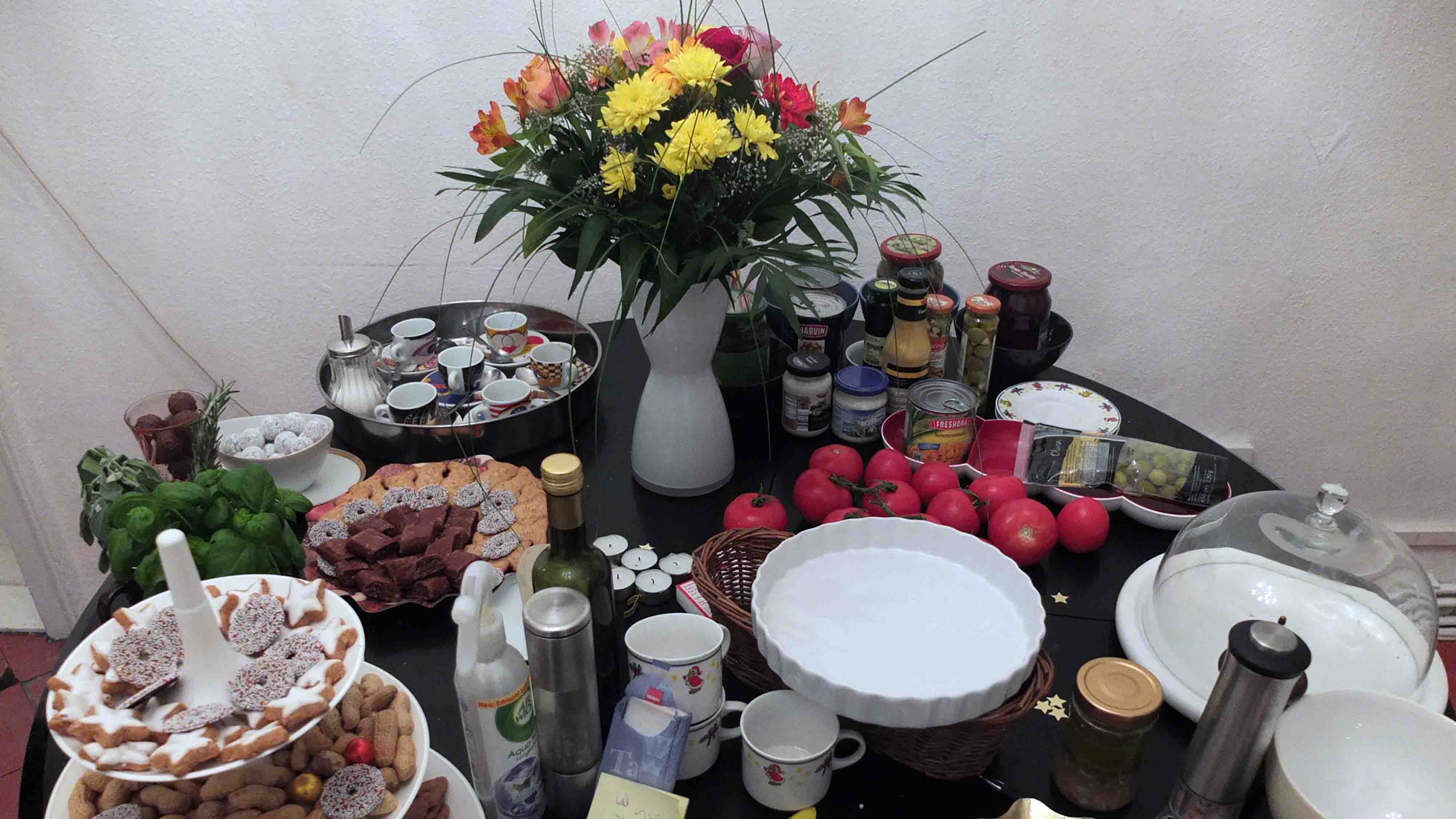 Die Bilder an den Wänden sollte man durch mitgebrachte eigene Bilder, die rechtefrei sind, austauschen und das Porzellan sollte so gewöhnlich wie möglich aussehen, um als Alltagsgegenstand durchzugehen. Handelt es sich um Kunstwerke im öffentlichen Raum, kann dies unter Umständen unter "Panoramafreiheit" fallen, doch das ist von Bundesland zu Bundesland unterschiedlich geregelt.
