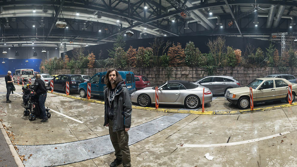 Die Dreharbeiten zu den Szenen auf der Weinsteige wurden jedoch nicht vor Ort, sondern in einer Messehalle in Freiburg gedreht. Die Fahrbahn sowie die Stützmauer wurden mit großem Aufwand in fünf Tagen nachgebaut, 30 fahrtüchtige Autos standen auf der Fahrbahn und simulierten den Stau. Auf der anderen Seite der Straße war eine blaue Leinwand angebracht, mit deren Hilfe in der Nachbearbeitung das Stuttgarter Panorama eingeblendet wurde. So konnte 13 Tage lang die Kulisse an der Weinsteige gefilmt werden, ohne dabei vom Verkehr oder Wetter beeinflusst zu werden.