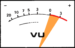 Der Zeiger des VU-Meters sollte idealerweise möglichst hoch ausschlagen, aber nicht über die 0 dB Marke hinausgehen. Während der Proben steuert der Tonmeister den Pegel (mit einem Regler am Tonbandgerät oder Mischpult) entsprechend aus, um möglichst viel Pegel aufzuzeichnen, ohne jedoch das Band zu übersteuern. Der zumeist rot gekennzeichnete Bereich sollte Tabu bleiben.