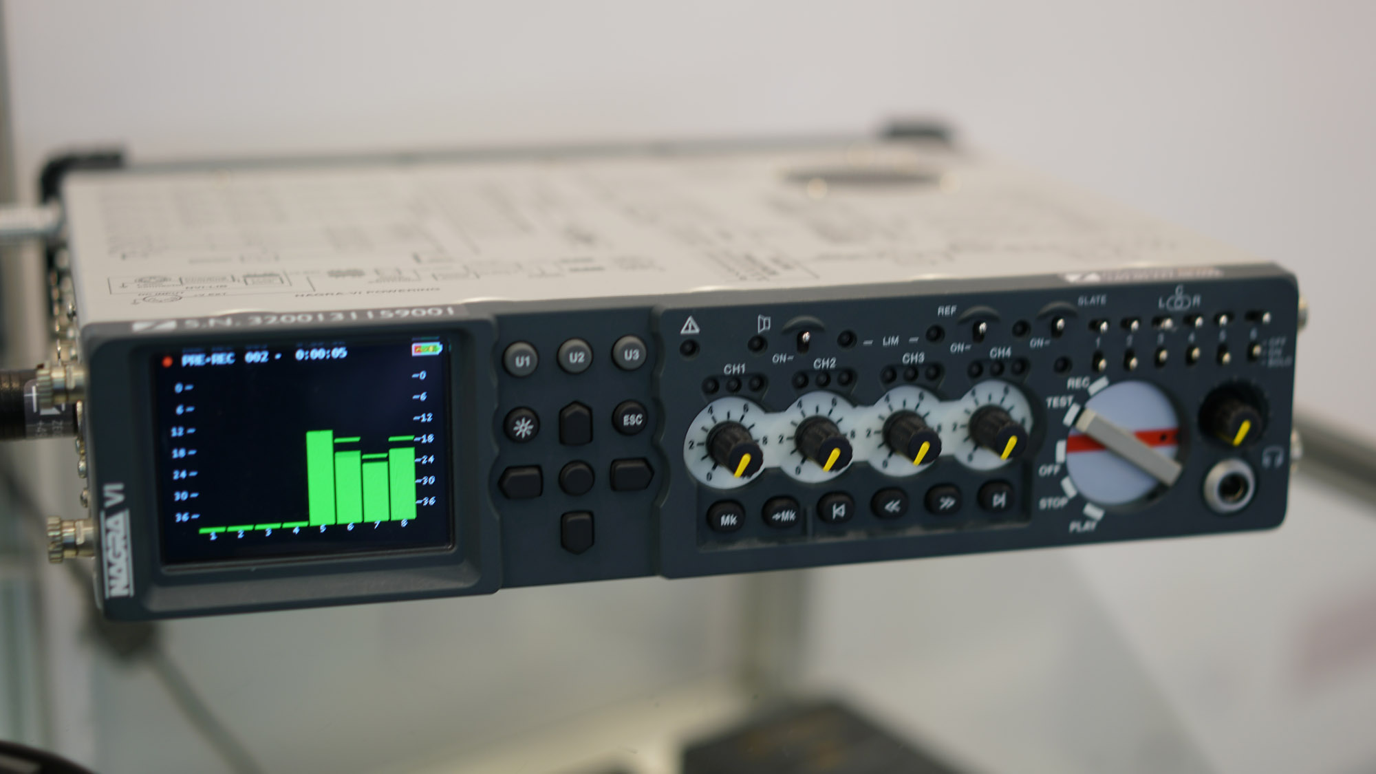 Bei der digitalen Nagra 6 enden die Skalen der Pegelanzeigen wie bei praktisch allen digitalen Recordern bei 0 dB. Deutlich sichtbar bleiben die Pegelspitzen bei etwa -12 dB, alles darüber bis zu den 0 dB ist der Sicherheitsbereich, unser Headroom (Gerät: Zeigermann Audio, Hamburg)