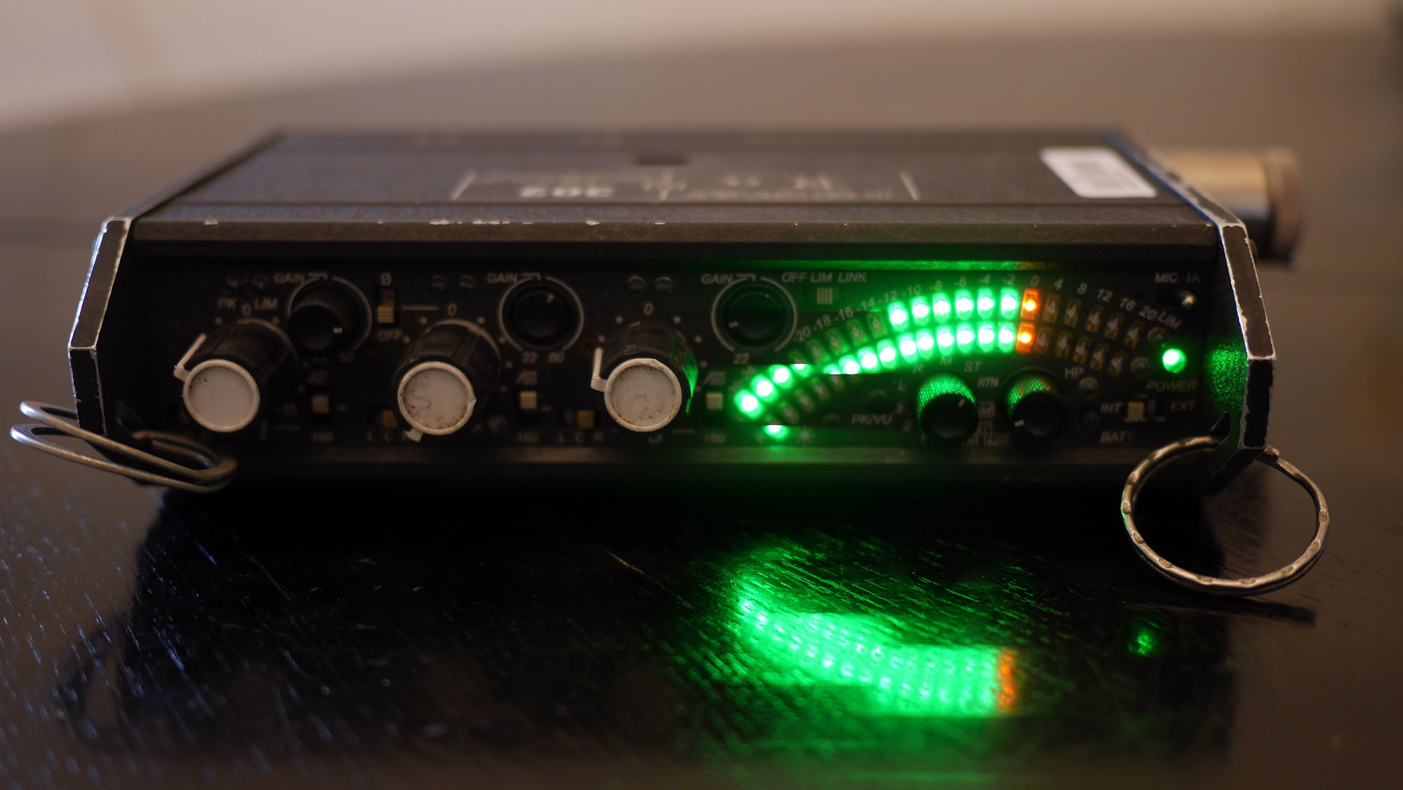 Die Pegelanzeige des Sound-Device Mischpults geht deutlich über die 0 dB hinaus, entspricht also der Skalen analoger Tonaufzeichnung
