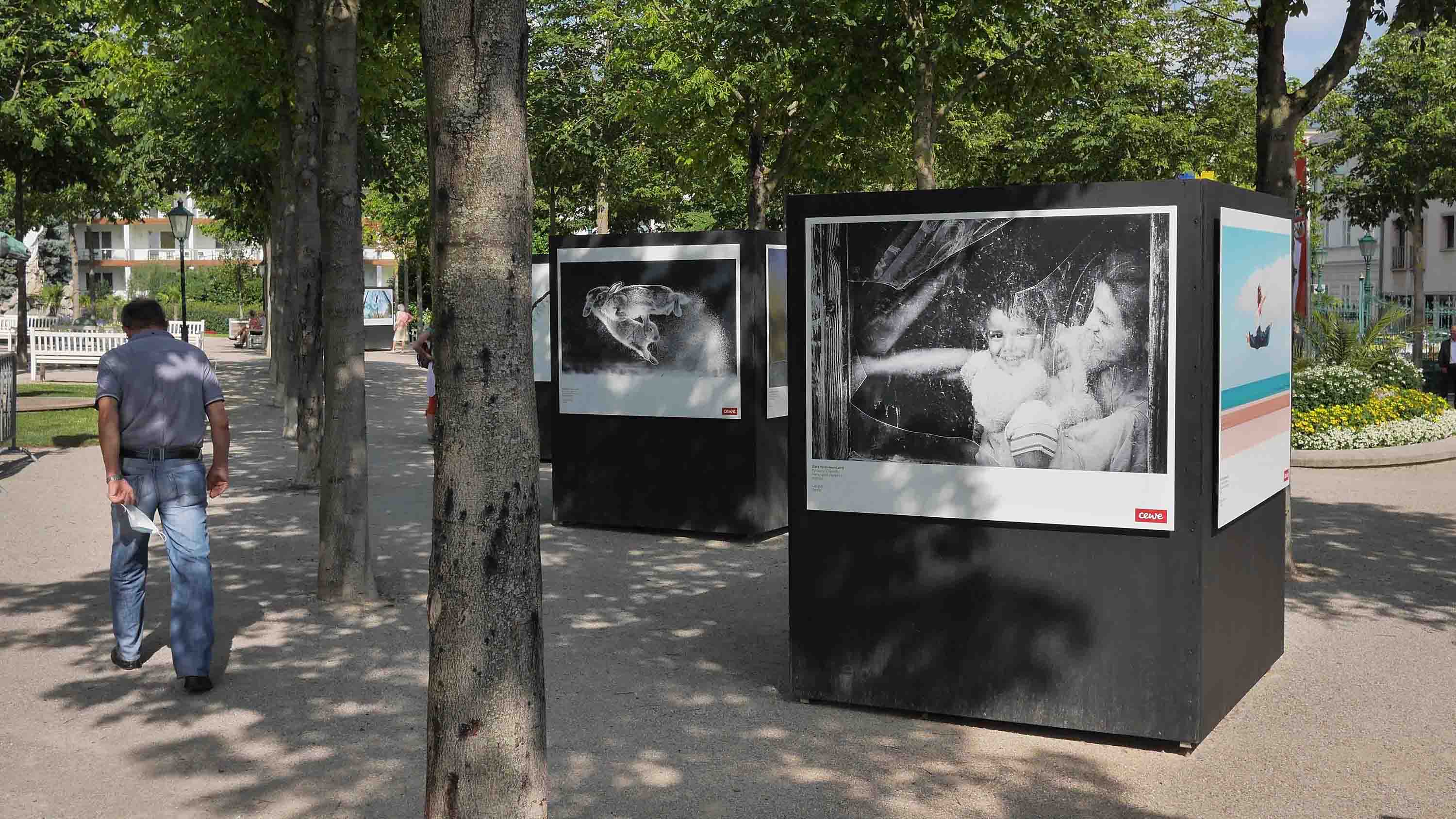 Die Bilder unseres obigen Beispiels stammen übrigens von dem großartigen La Gacilly-Baden Photo Festival. Dass die verschiedenen Fotoausstellungen, die überall im Ort, in den Parks, Straßen und Durchgängen installiert sind, wird eigentlich durch 360 Grad aufnahmen, bei denen man sich umschauen kann, erst richtig vermittelbar. Und natürlich durch einen physischen Besuch in Baden.