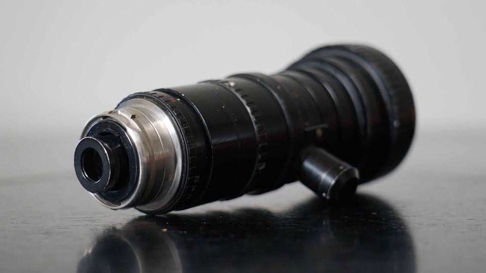 Der legendäre Klassiker, das Angenieux 12-120mm Zoom mit Lichtstärke 2,2 und dem klassichen Arri Stahlbajonnett. Bei seinem Erscheinen galt das Objektiv als revolutionär.Ob als begehrtes Sammlerobjekt oder für den Einsatz mit Vintage-Filmlook, auf jeden Fall ein besonderes Stück. Natürlich gehört das rote Angenieux-Originalcase dazu.Das Objektiv ist für 16mm gerechnet, passt also mit Adapter an MFT Kameras wie die Lumix GH oder die Blackmagic und natürlich falls noch vorhanden, Arri 16mm Kameras. Mit dem Objektiv wurde gearbeitet, doch es wurde stets pfleglich behandelt. Funktioniert, dennoch hier der übliche Hinweis: Keine Garantie, keine Rücknahme.