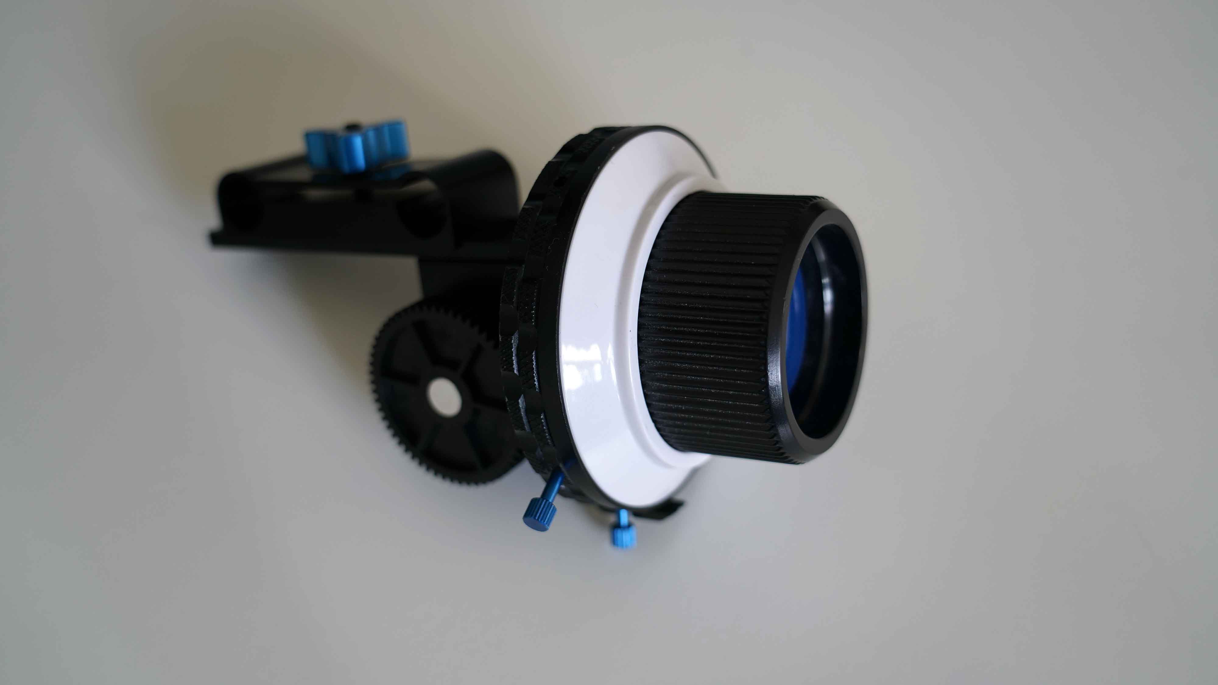 Wer professionell einen Spielfilm dreht, der dreht mit Festbrennweiten und zieht natürlich die Schärfe manuell. Ein Follow Focus übersetzt die Drehbewegung des Schärferings an einem manuellen Objektiv seitlich auf ein Einstellrad an dem man Beschriftungen für die Schärfepunkte vornehmen kann.