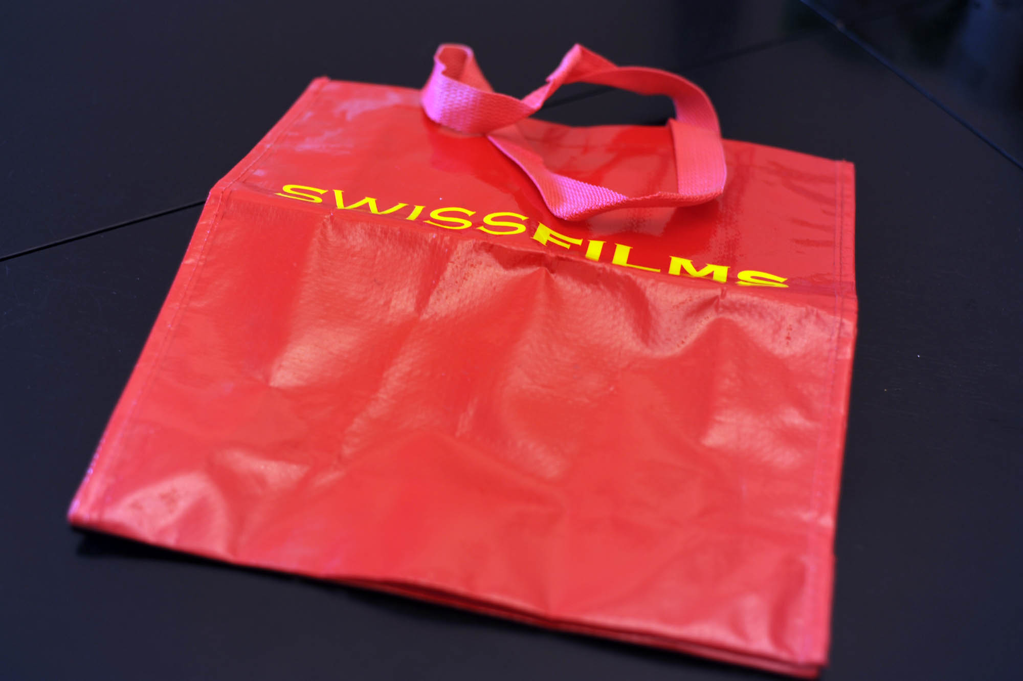 Diese coole Tasche ist neu und wirklich ein Hingucker. Zugleich natürlich ein Zeichen für den Schweizer Film! Hier mit anderer Farbstellung in gelber Schrift auf Rot!